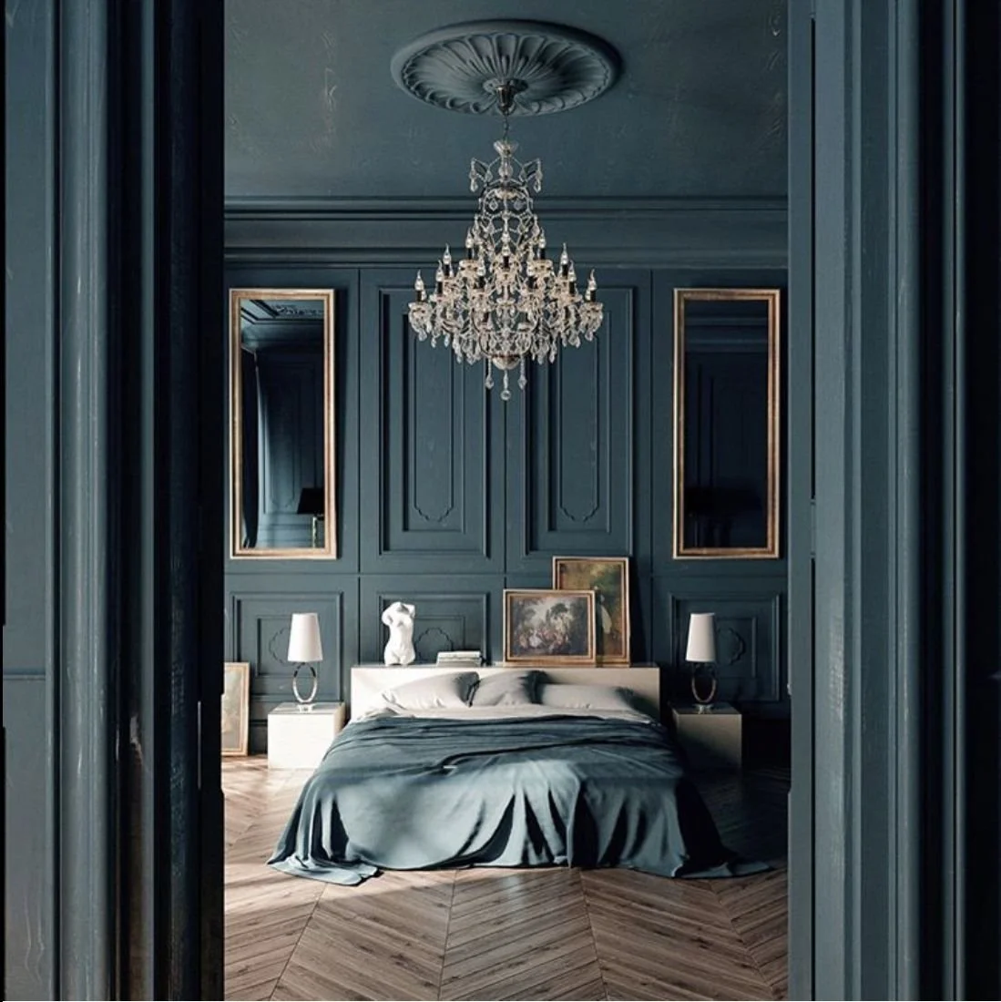 When deciding on textures to use in your space, think foremost about the feelings that you would like the room to evoke— is this space serving as a sanctuary, a place for relaxation and contemplation? Think in soft, comforting textures such as velvet or Scandinavian wood. Will this space serve to fuel creativity and excitement? Bright and reflective elements like glass, especially in furniture or chandeliers, as well as glossy metals or marble help add light and drama.