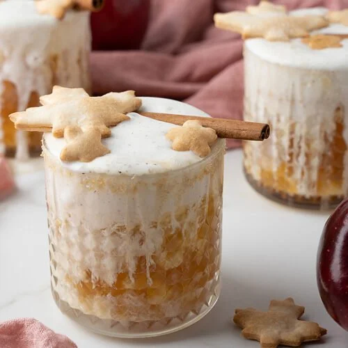 Combine rum, Schnapps, apple cider, and honey simple syrup into glass and stir to combine. Fill glass with crushed iced and top off with ice cream, garnishing with a sprinkle of cinnamon.