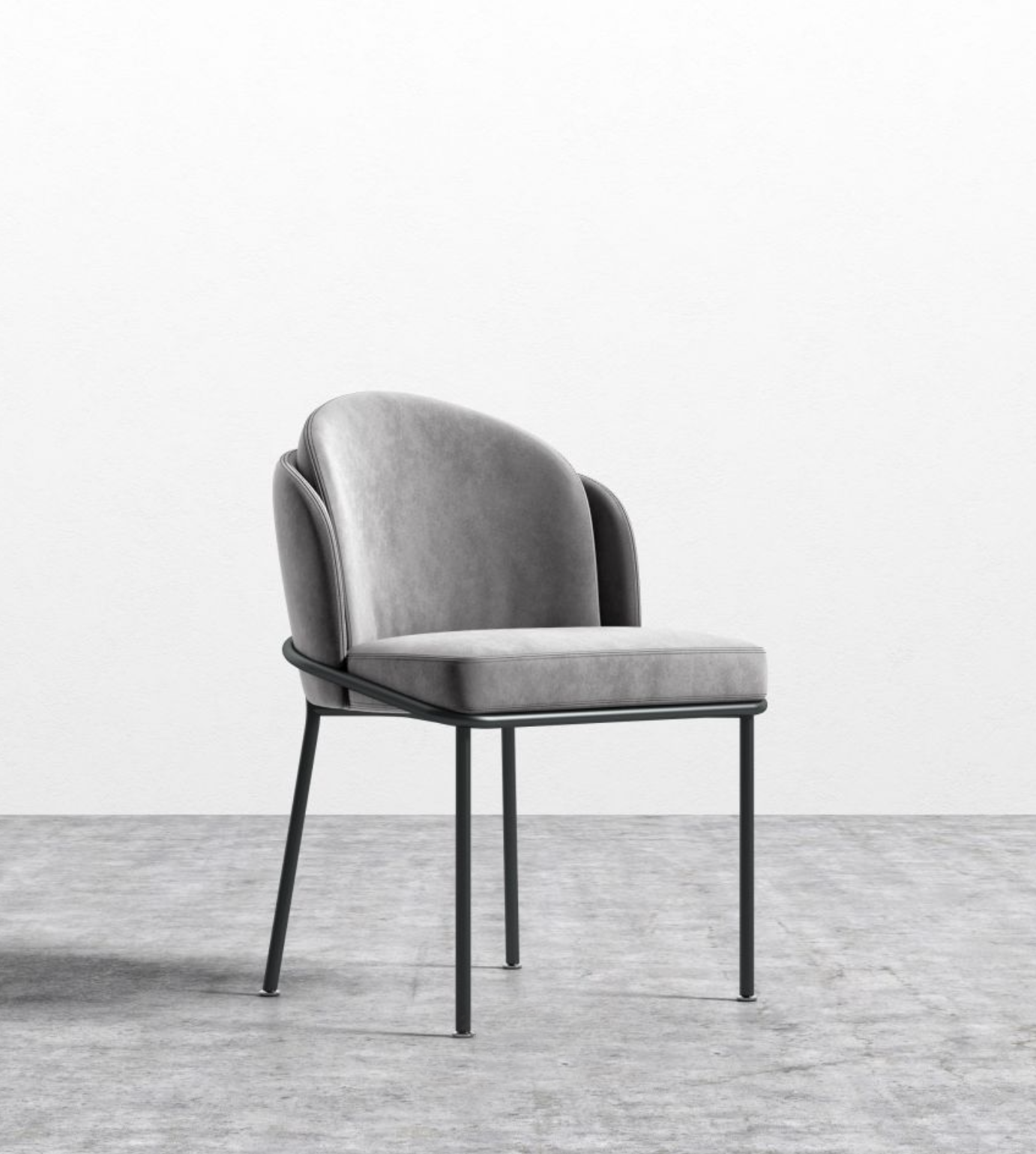 The timeless silhouette of the Angelo Dining Chair exudes luxury within the home. Sleek black powder coated legs wrap around a full and accommodating seat and backrest filled with premium high density cushioning. Angelo's chic ambiance encourages a leisurely and indulgent dining experience, adding to your home's overall aesthetic.