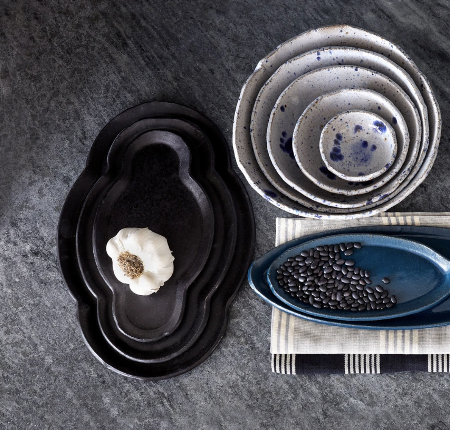 Bring handmade elegance to the table with Eclipse Platters. Primitive yet modern in their simplicity, these one-of-a-kind dishes were lovingly handmade in Chicago by local ceramicist Aron Fischer of Facture Goods. Their sophisticated shapes play nicely with their striking matte black glazed finish. An effortless addition to any serveware collection, these shallow Eclipse Platters are perfect for an arrangement of cheeses or hors d’ouevres before the meal or for serving up sides at dinner.